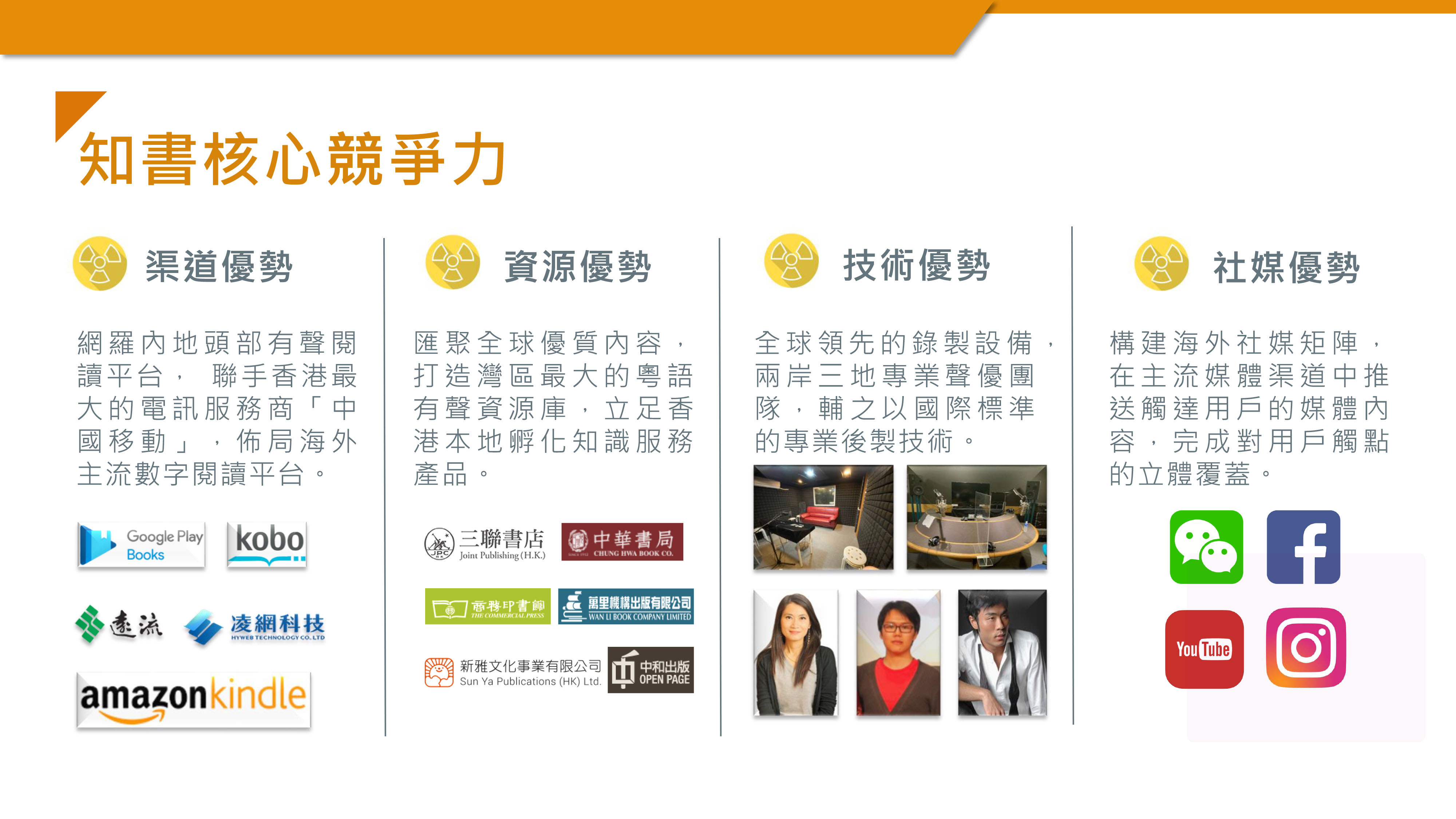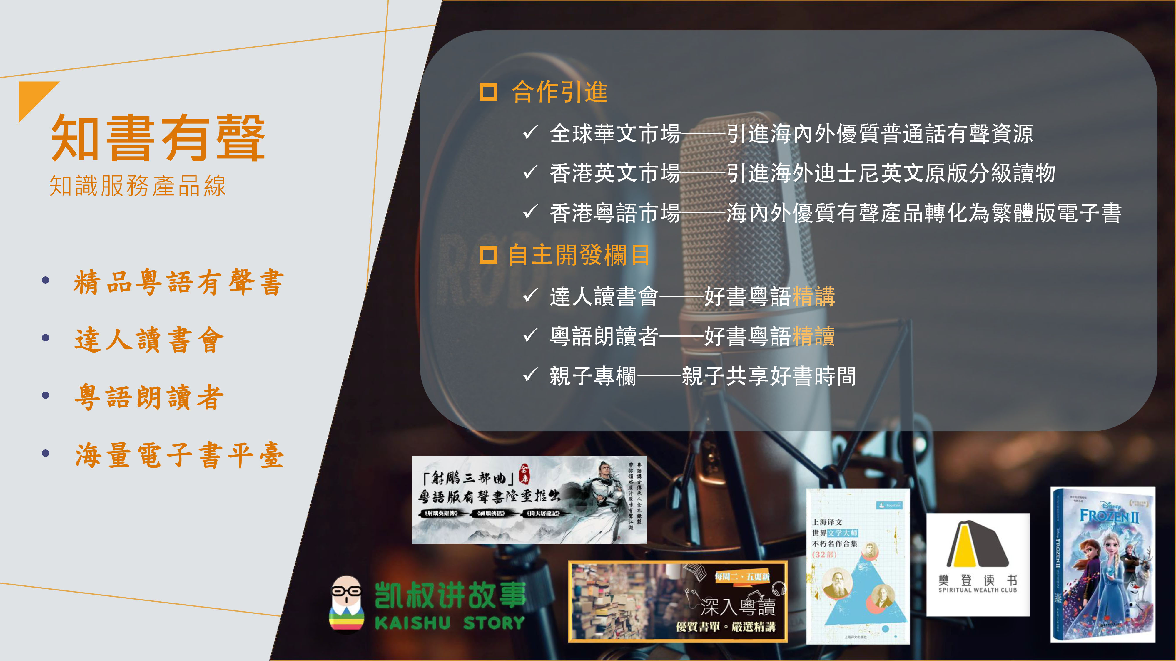 作為香港首個有聲閱讀平台,知書竭力打造香港本土化內容的同時,亦致力於構建大灣區最大的粵語有聲資源庫,以文化融合性及產品包容性吸納更多優質資源。